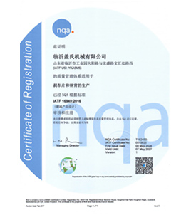 临沂盖氏机械有限公司成立于1992年,坐落于临沂市工业园,公司总占地面积136000平方米,员工总人数300余人,拥有现代化的办公环境、先进的生产设备,高素质的技术人才和管理人才。现有生产、检测设备300台(套),年产盘式刹车片600万套,钢背9000万片,鼓式刹车片200万套,刹车片模具600多套。产品出口美国、加拿大、印度、韩国、哥伦比亚等国家和地区,在国内外享有良好信誉。